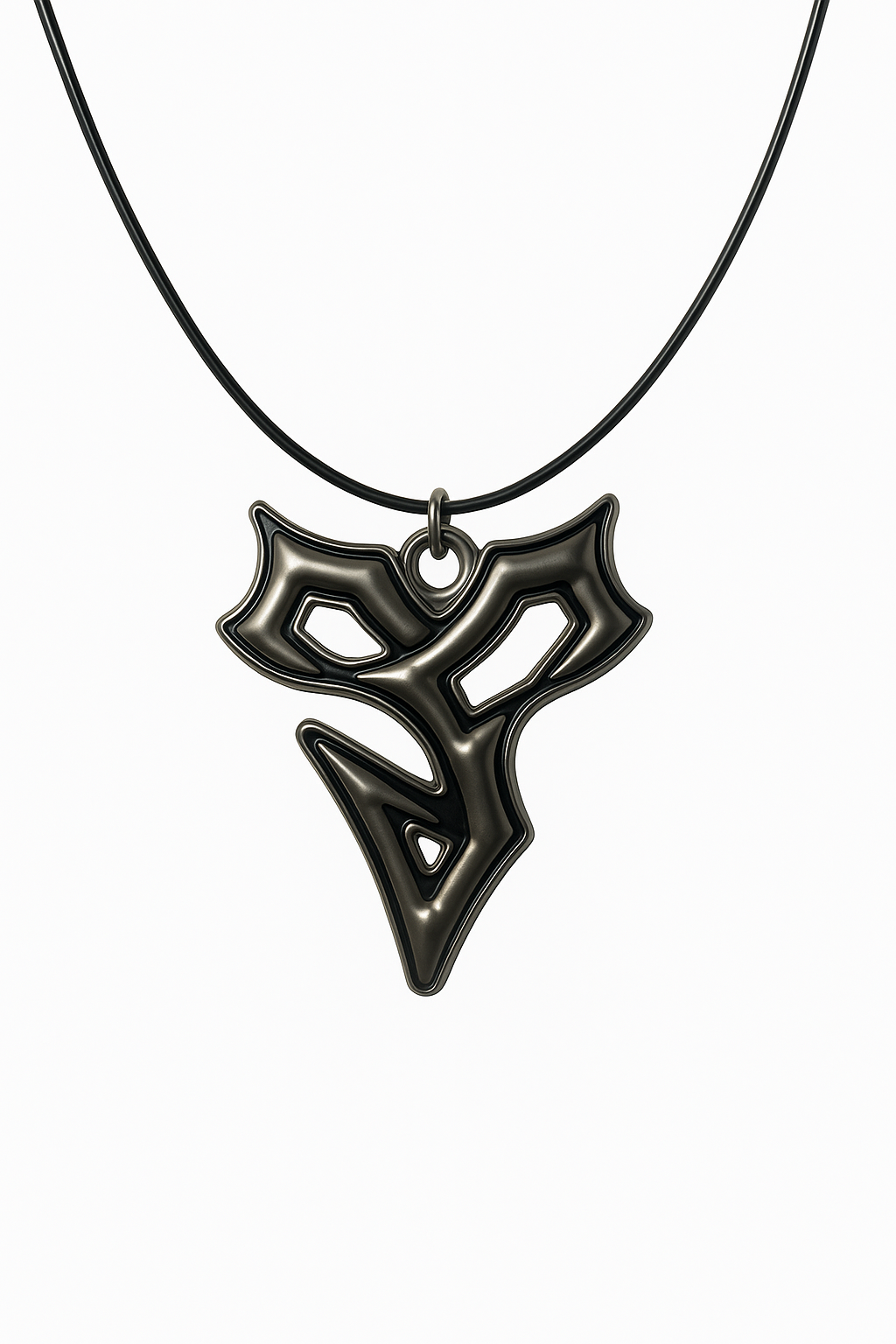 Collar con colgante metálico en acabado oscuro que representa el icónico emblema de los Nobodies (Incorpóreos) de la saga Kingdom Hearts. Con diseño detallado y cordón negro ajustable, es una pieza perfecta para fans de la serie, cosplayers o coleccionistas que quieran llevar siempre consigo un símbolo único del universo Kingdom Hearts.
